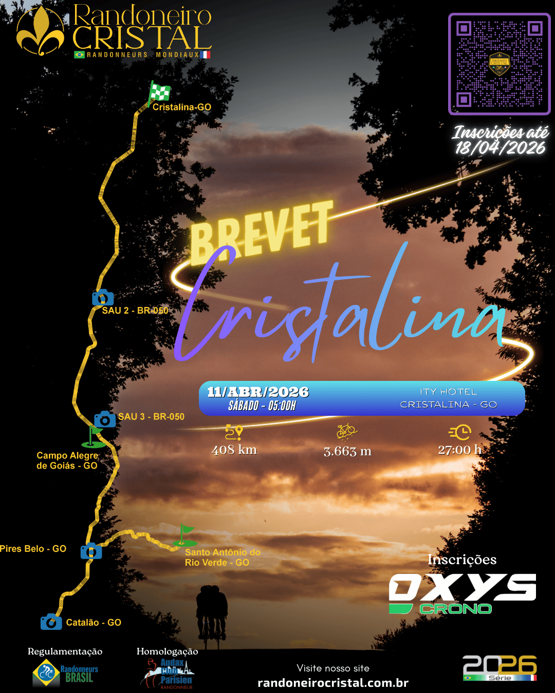 segundo BRM400km do calendário 2026, saindo do Ity Hotel em Cristalina-GO, e